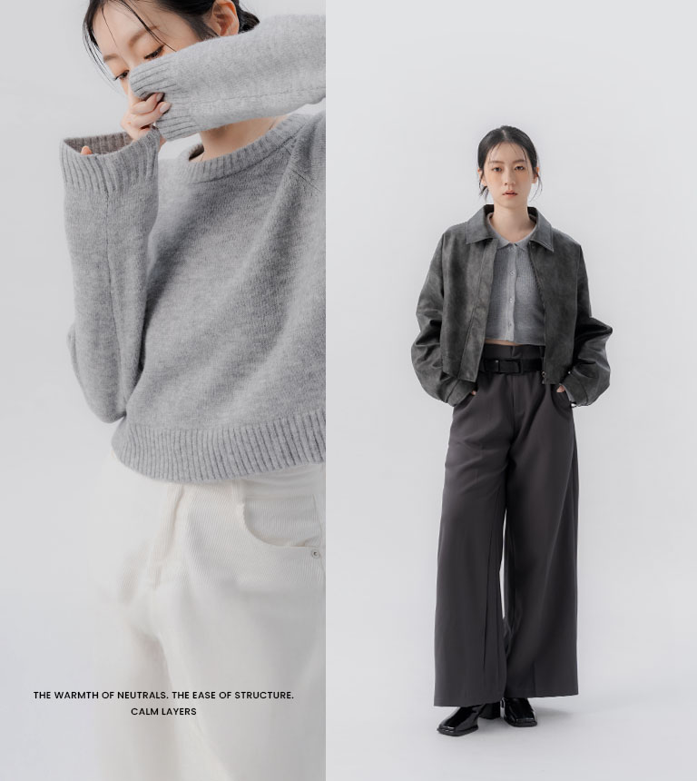質感絨毛設計針織套裝-深灰 S/M