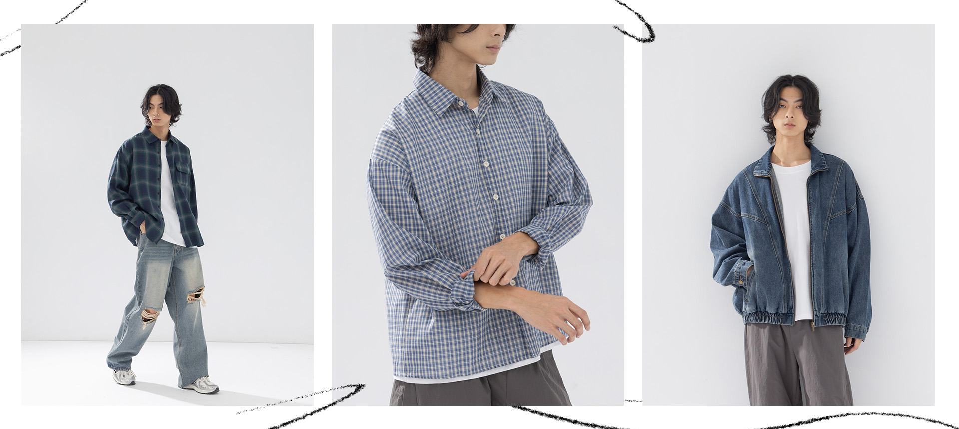 男裝 原色反褶設計牛仔七分褲S/M/L/XL