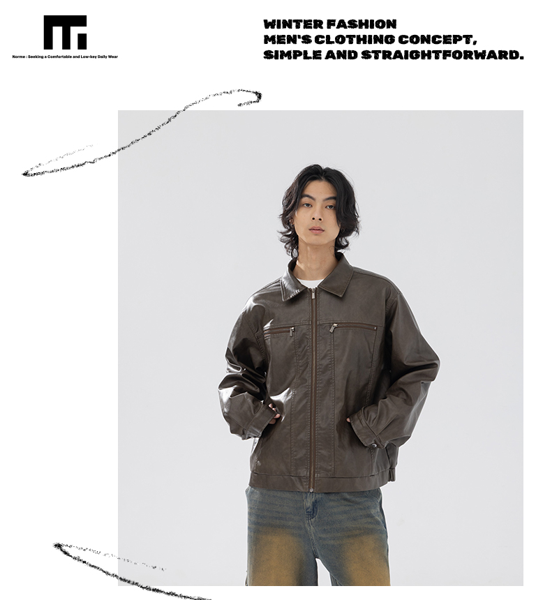 男裝 復古刷色襯衫領皮革外套 M/L
