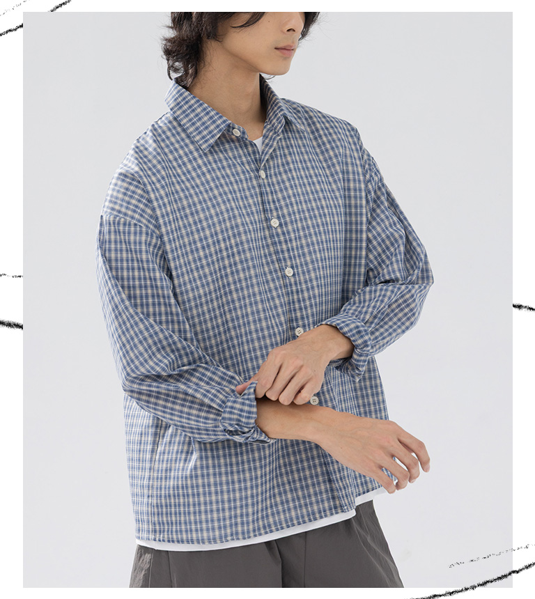 男裝 經典小格紋設計長袖襯衫M/L/XL