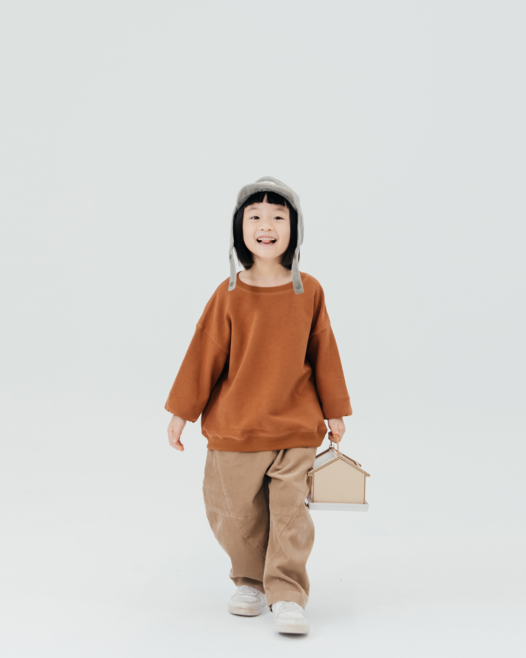 童裝 素面休閒長袖短褲套裝-咖啡 M/L/XL