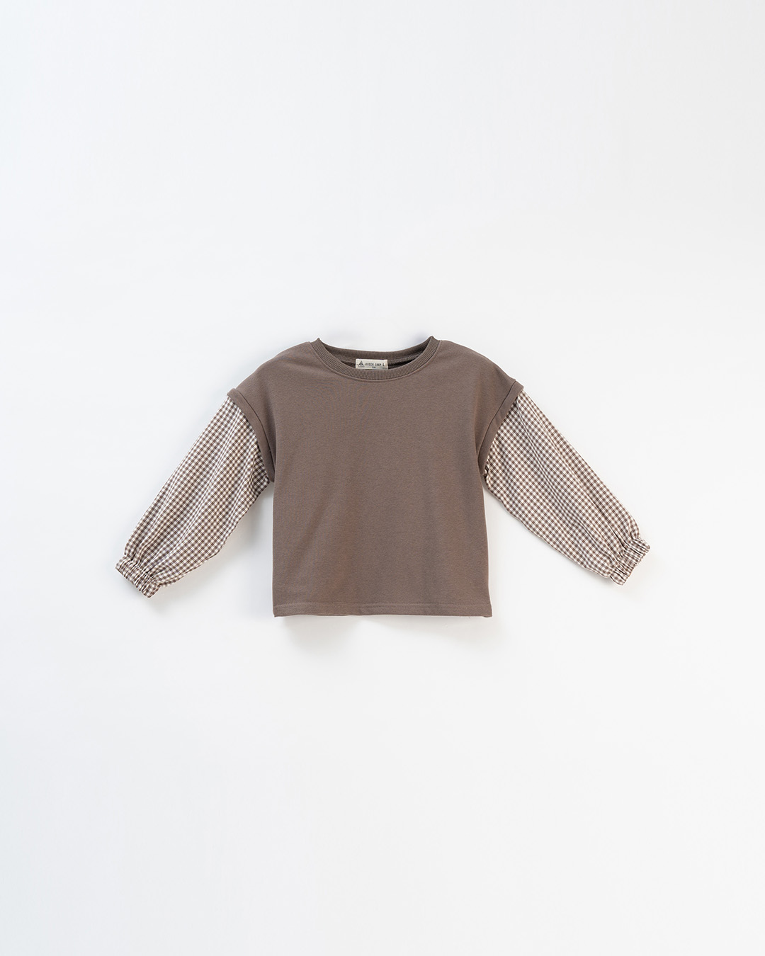 女裝 親子系列 格紋拼接圓領上衣 兩色售