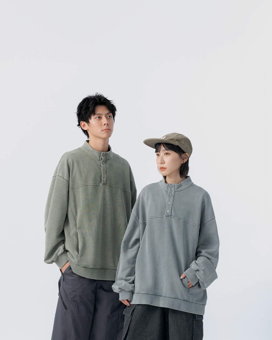 洗水設計半門襟排釦衛衣 兩色售 1/2