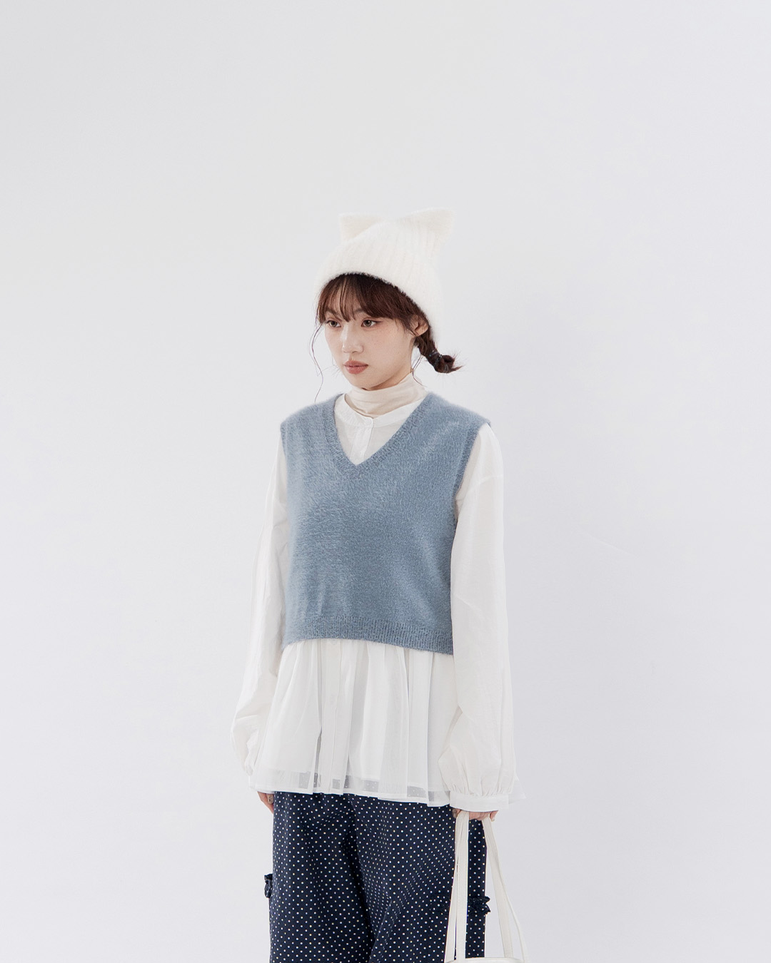 毛絨V領短版針織背心 四色售