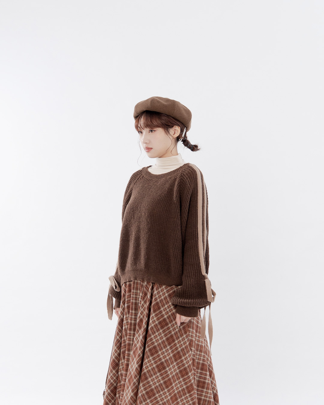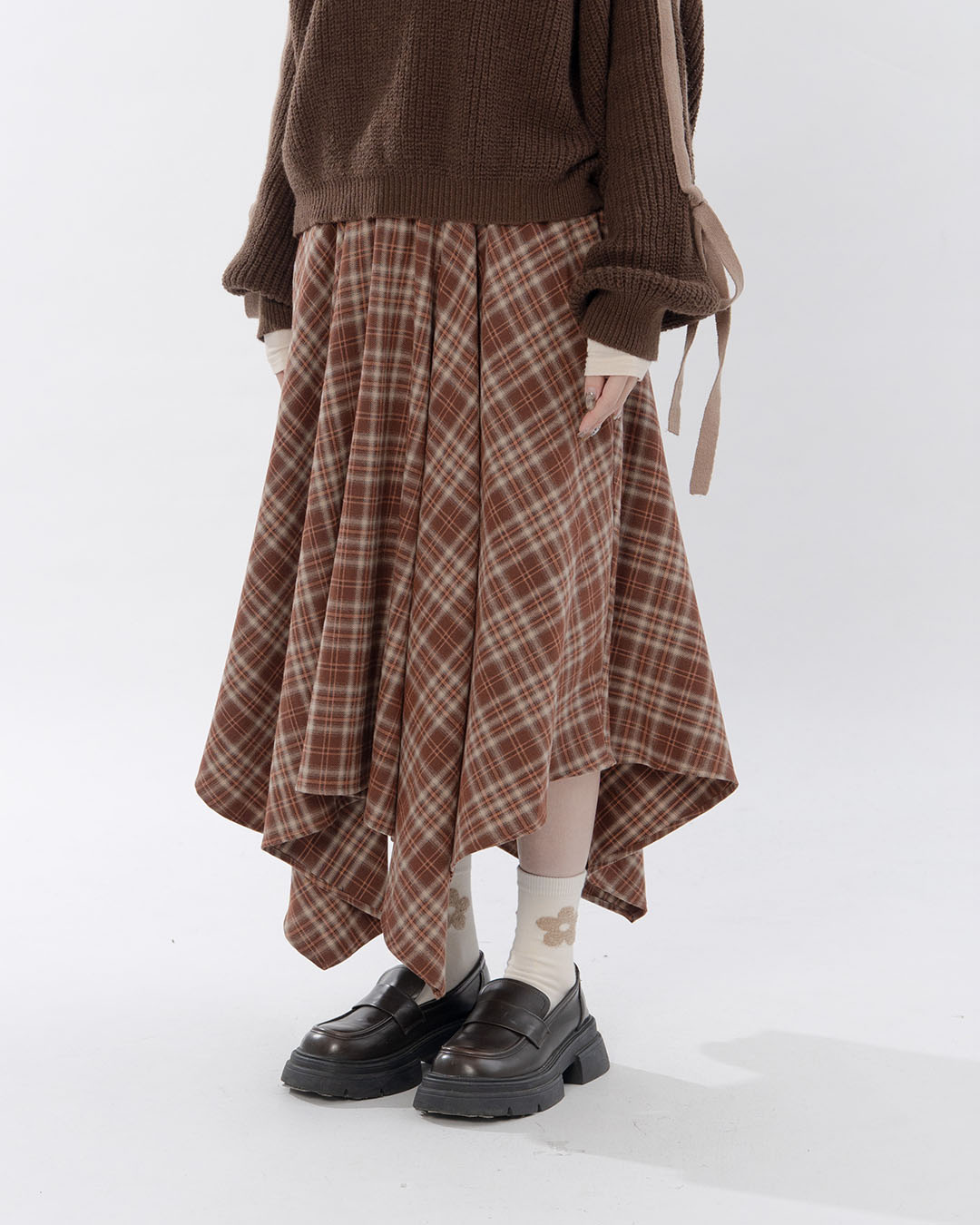 格紋絨面不規則傘擺長裙 兩色售