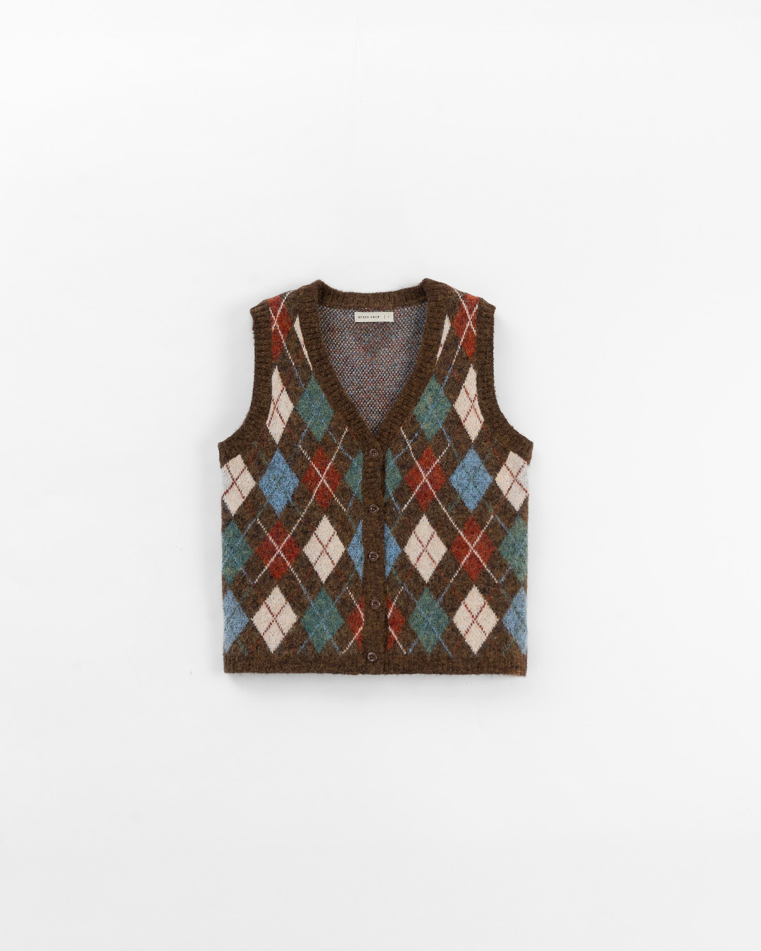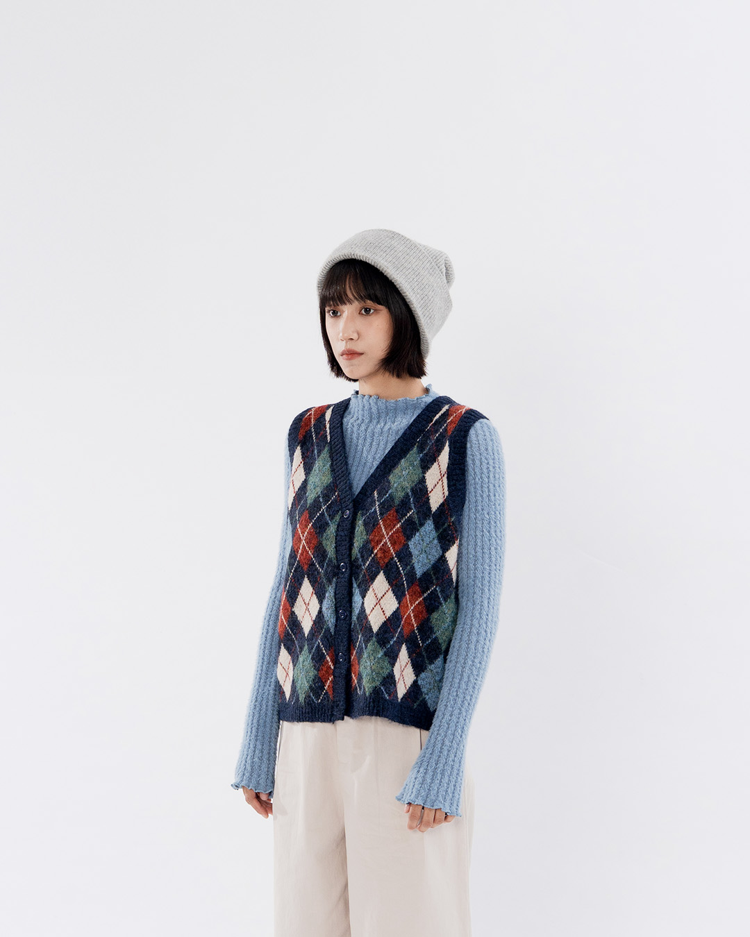 配色菱格紋V領針織背心 兩色售