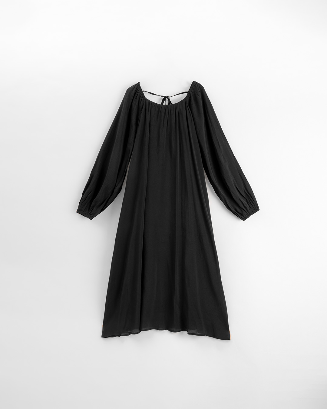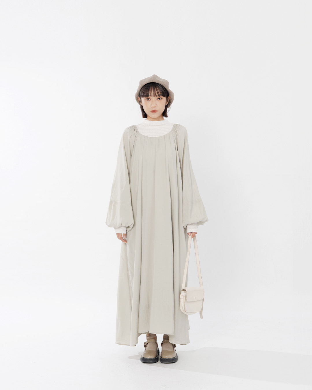 抽皺綁帶澎袖長洋裝 兩色售