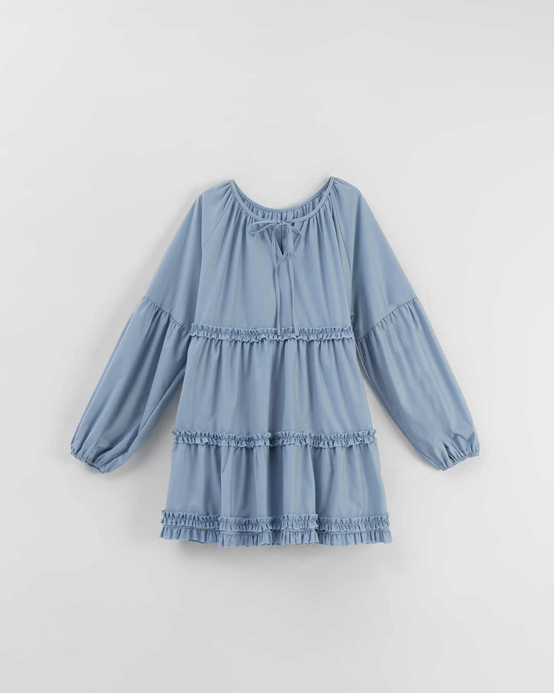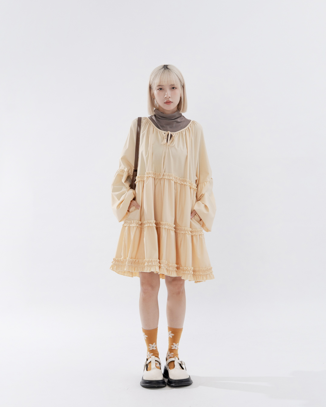 綁帶澎袖荷葉短洋裝 三色售