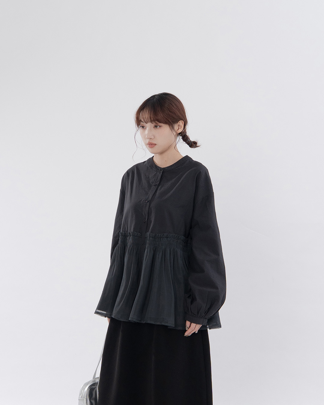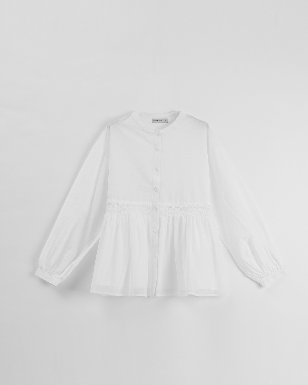 荷葉透紗剪接設計中山領襯衫 兩色售