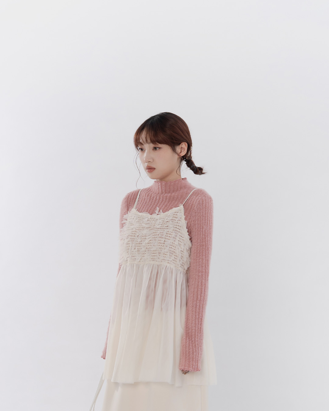 配色木耳邊高領上衣 四色售 S/M/L