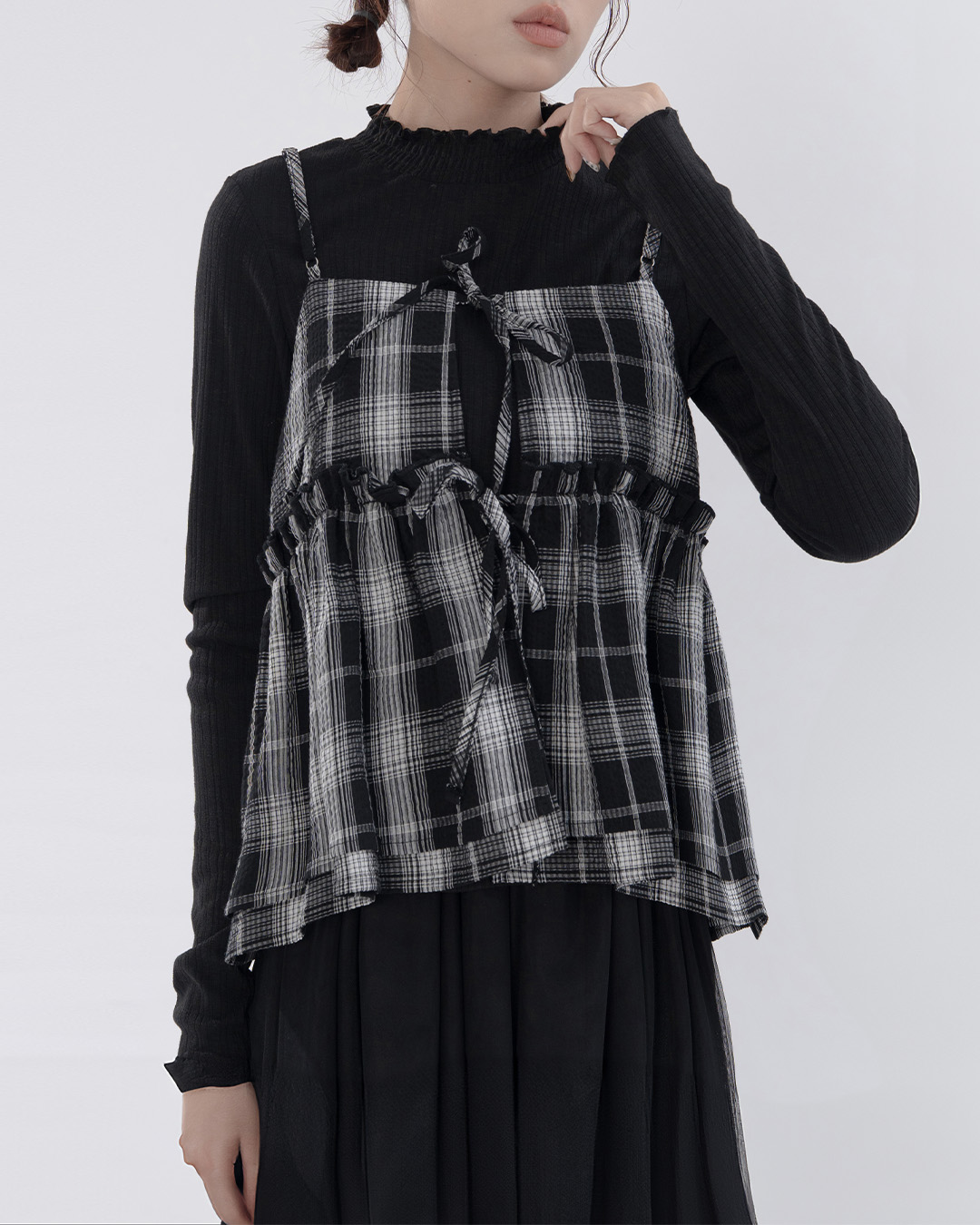立體泡泡格紋細肩背心 兩色售