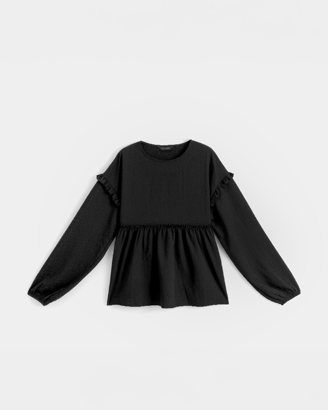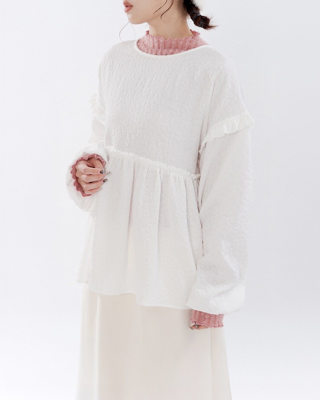 緹花荷葉傘襬圓領上衣 兩色售