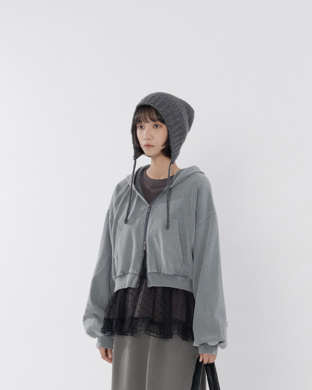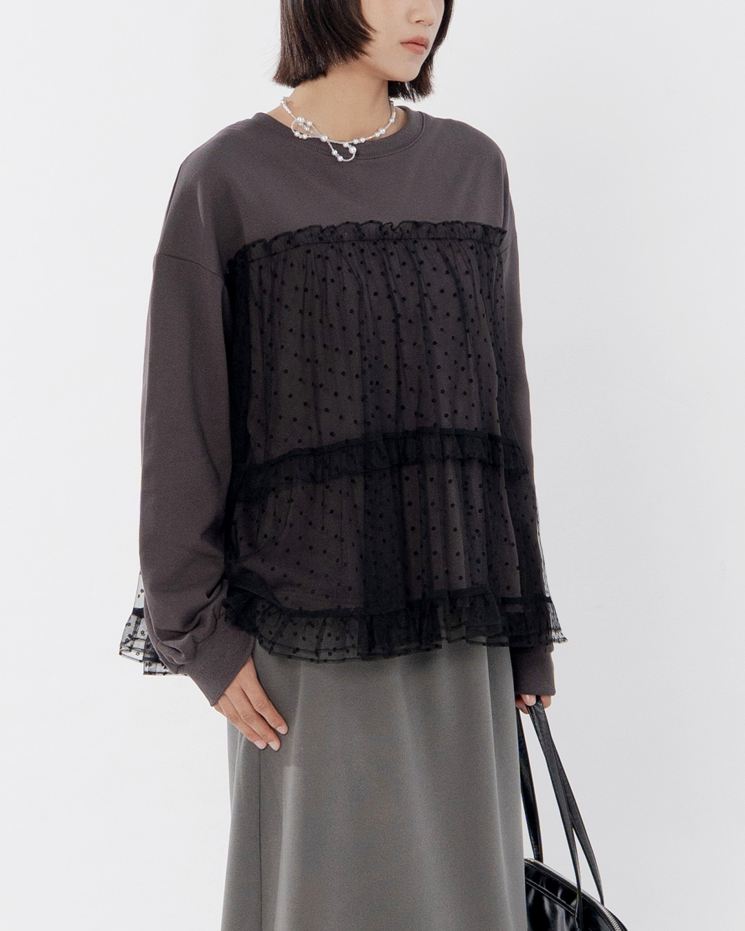 荷葉小花透紗剪接設計衛衣 兩色售