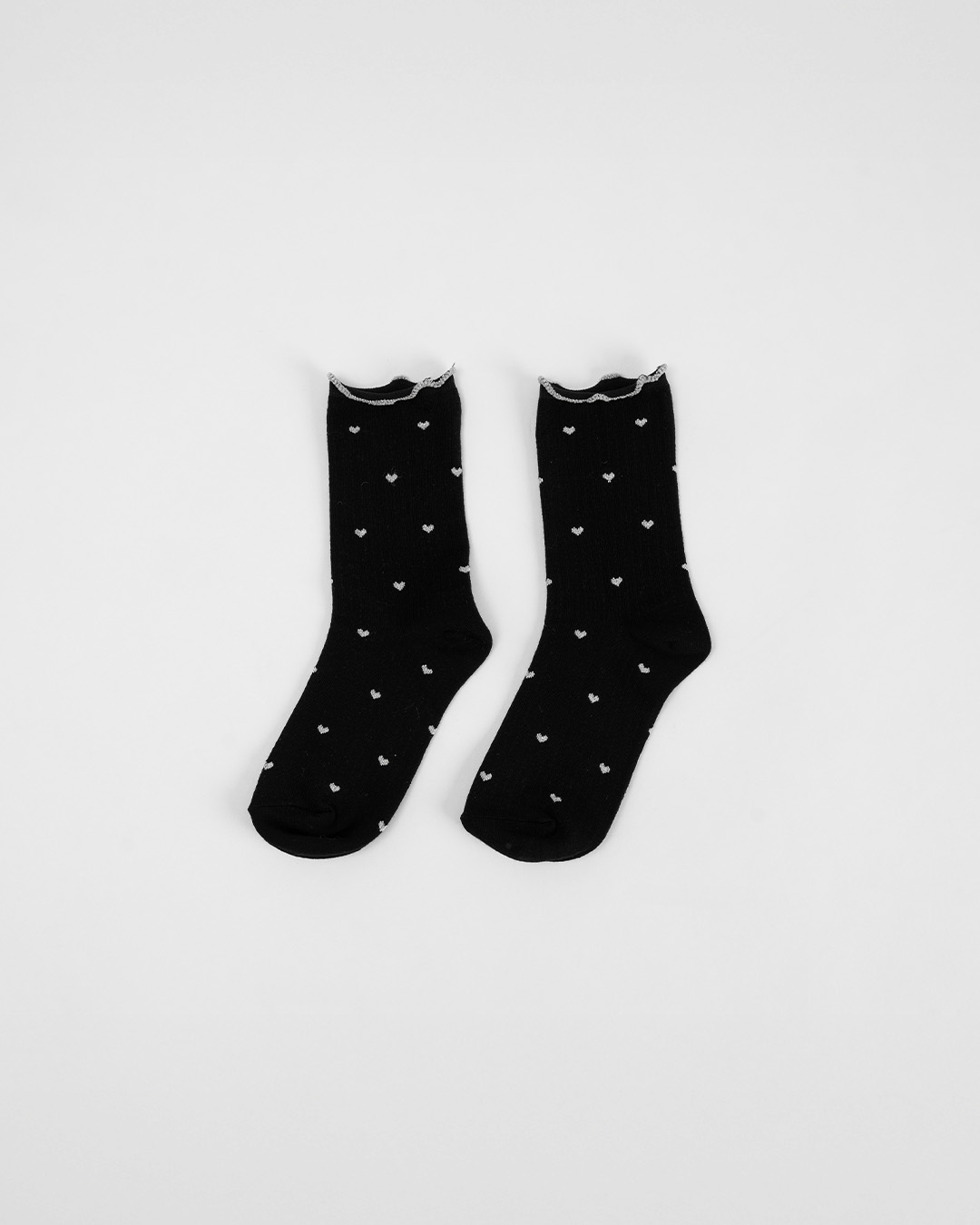 金蔥小愛心木耳邊造型中筒襪 兩色售