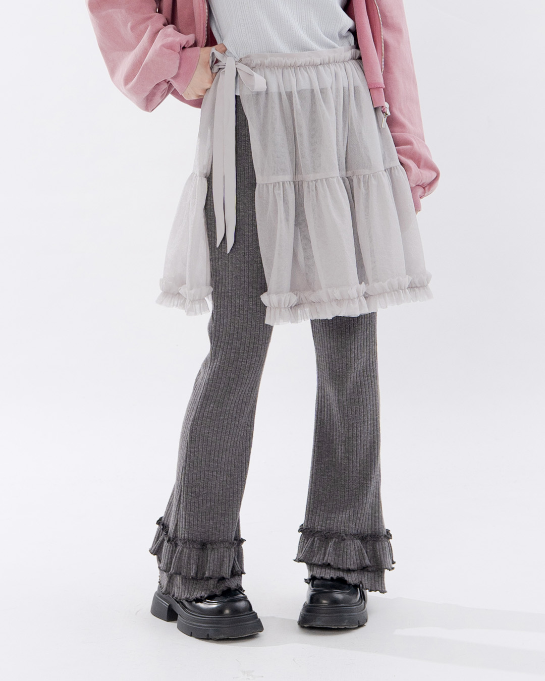 光澤荷葉剪接網紗裙簾 兩色售