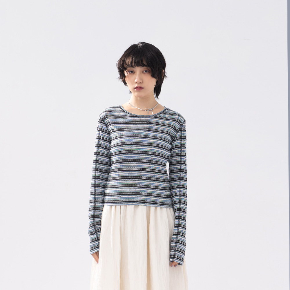 素面酒瓶領合身長袖上衣 六色售 S/M/L