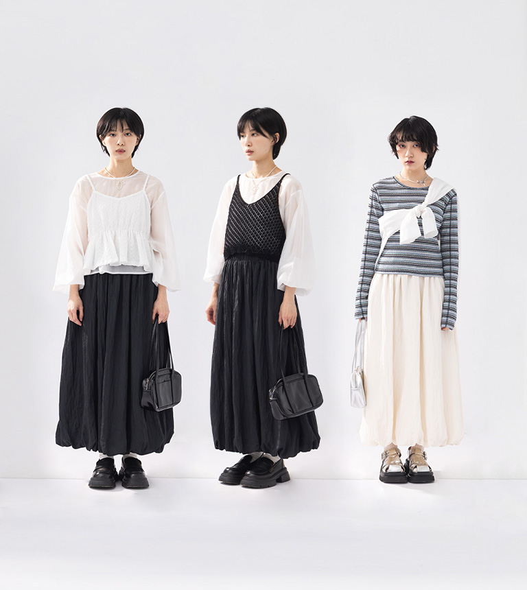 質感光澤絨面荷葉蛋糕長裙 三色售