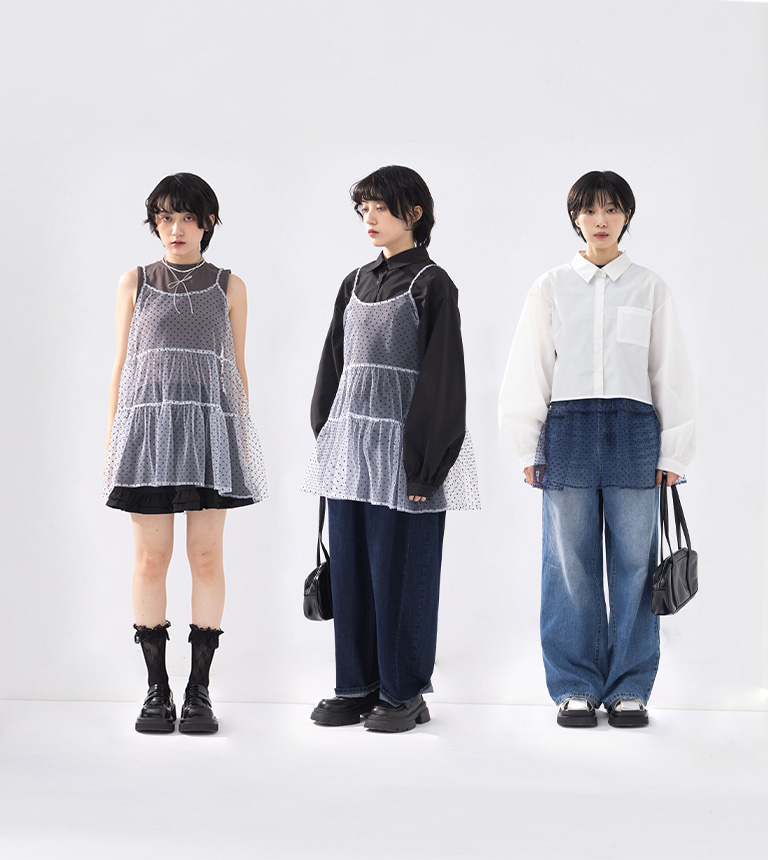 點點蛋糕剪接造型細肩罩衫 兩色售