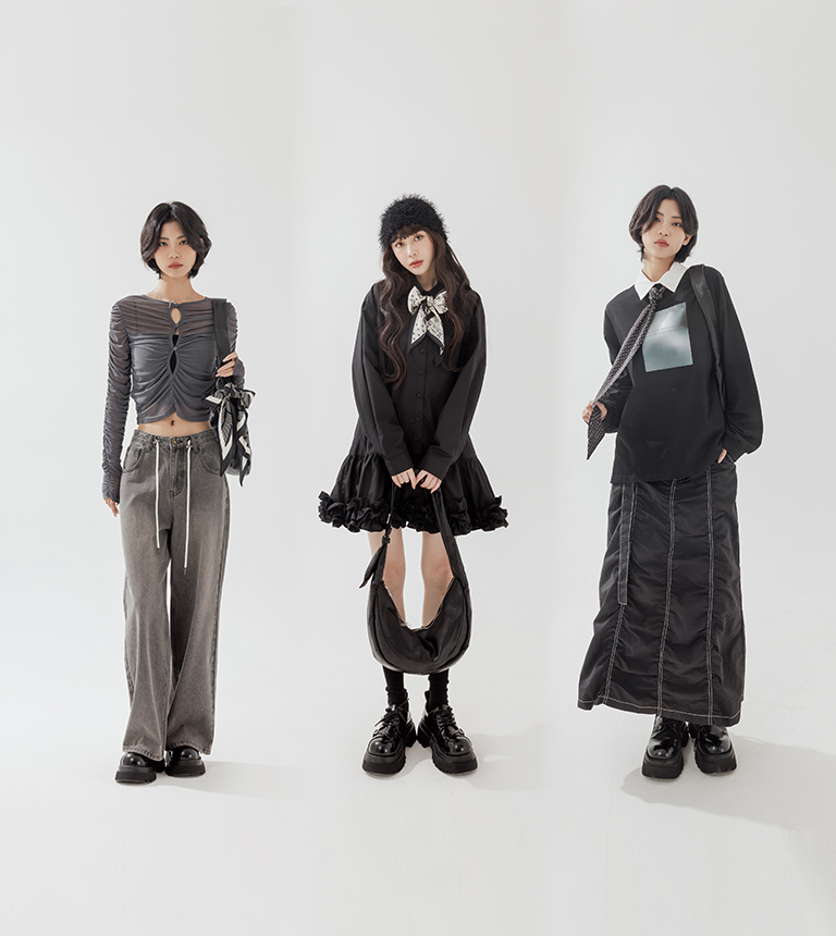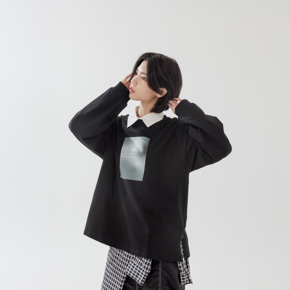兩面穿排釦抓皺設計透膚長袖上衣 三色售