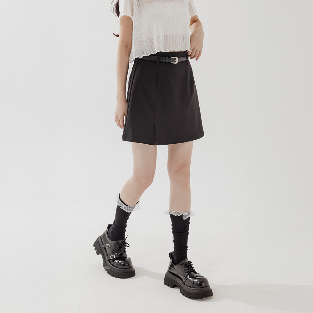 開衩設計顯瘦短裙附皮帶 兩色售 S/M/L