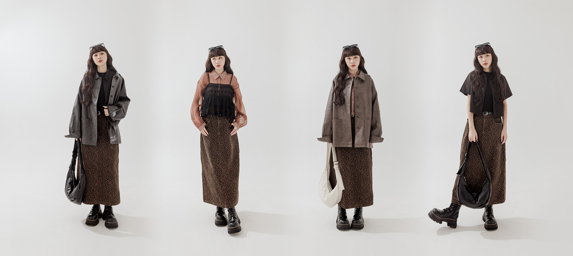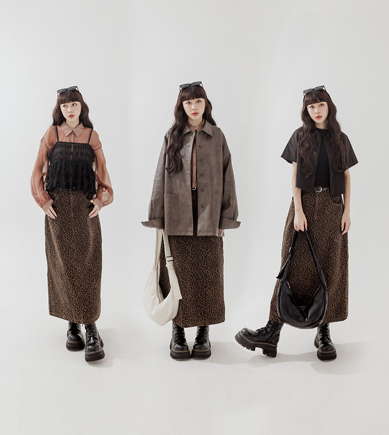 不對稱剪接開衩絨面長裙 兩色售 S/M/L