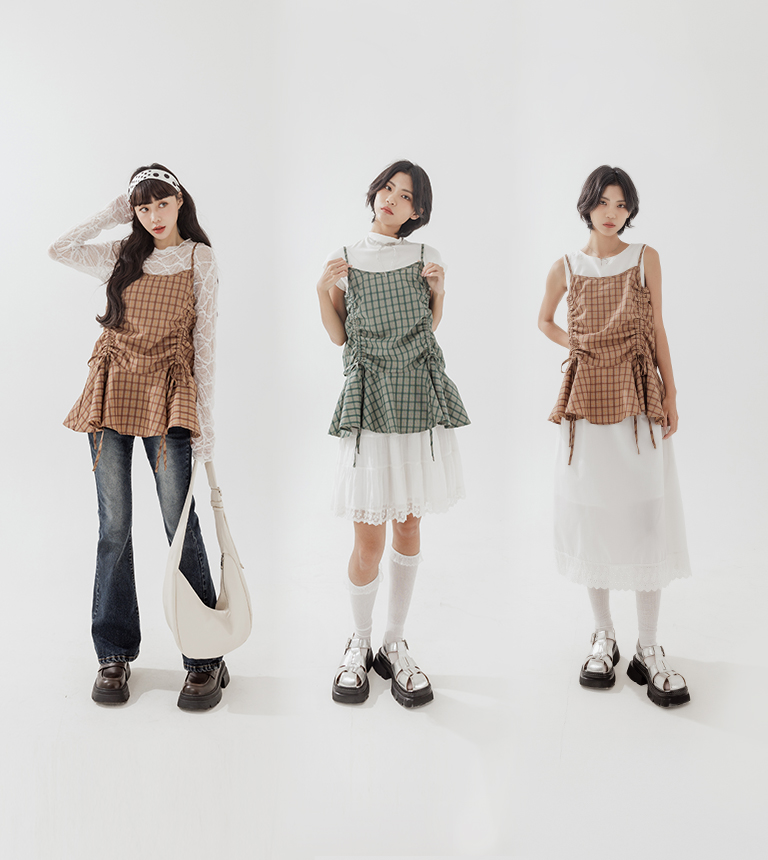 格紋袖抽繩綁帶設計寬版襯衫 兩色售