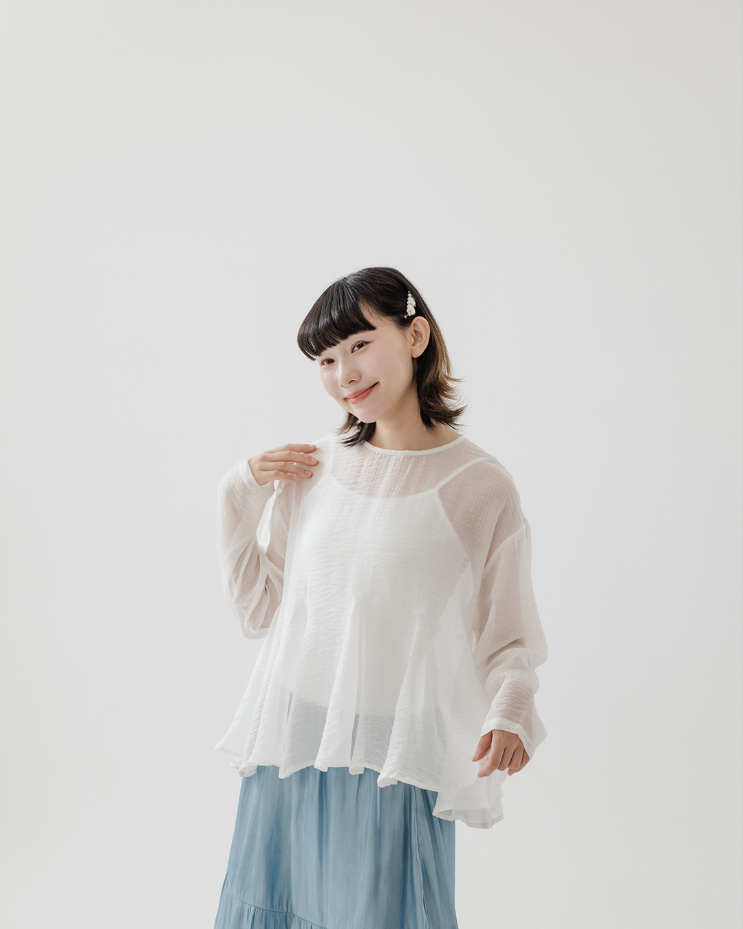 棉花糖 兩側抽皺設計透膚襯衫 三色售M/L/XL