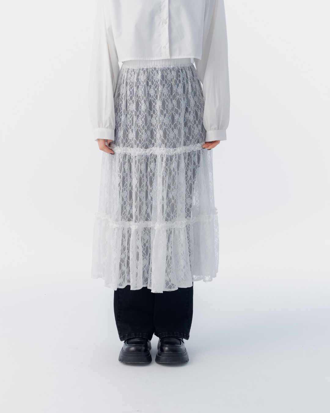 蕾絲透膚蛋糕襯裙罩衫 兩色售