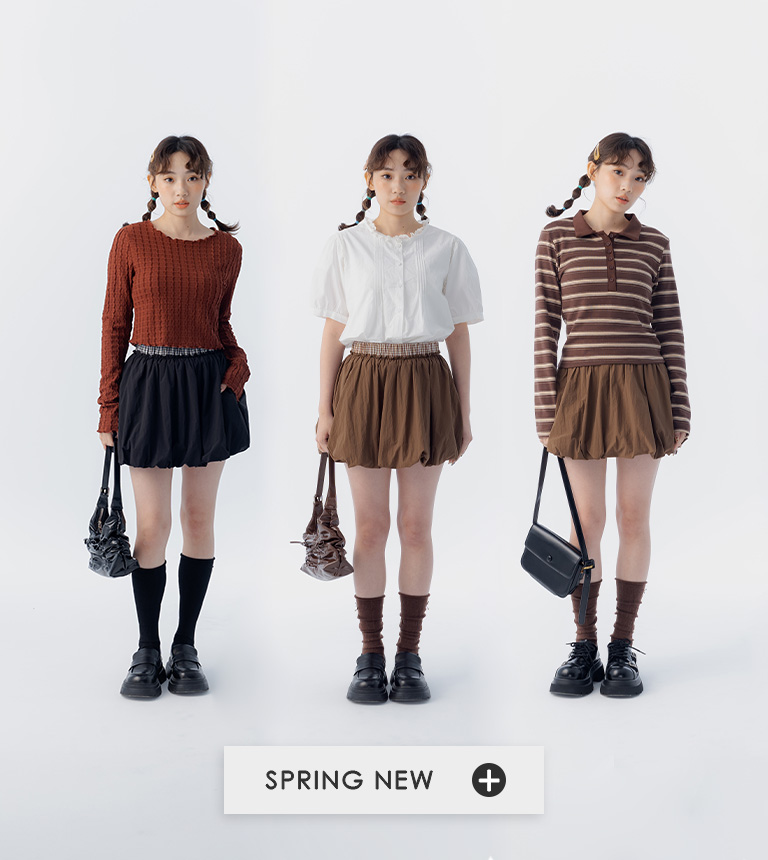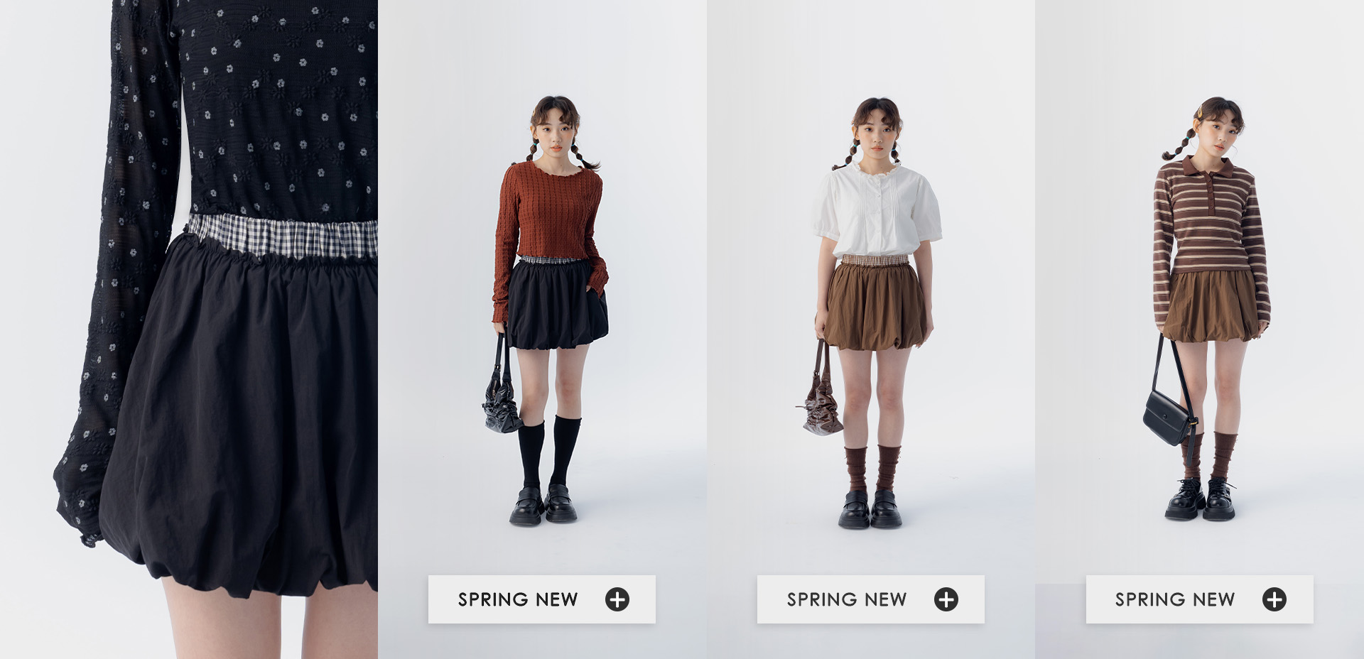格紋腰頭設計花苞短裙 兩色售 S/M