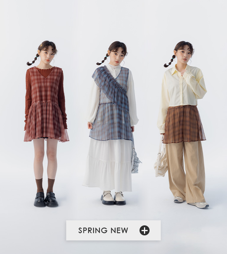 格紋透膚網紗兩件式附襯裙罩衫背心三色售