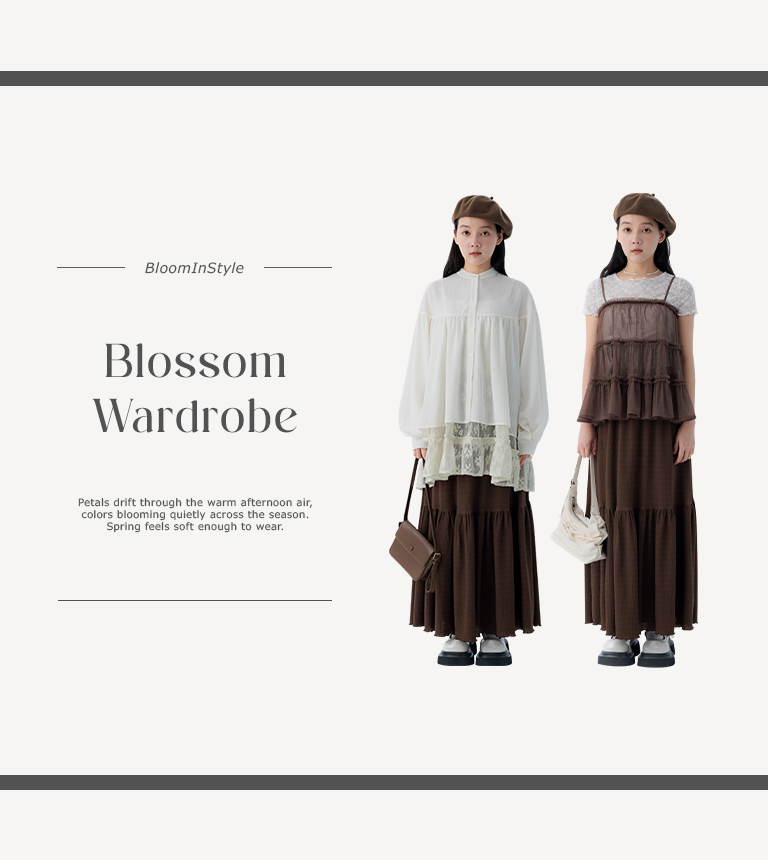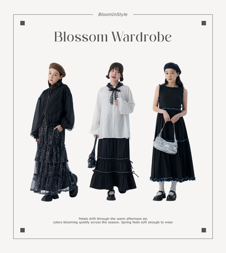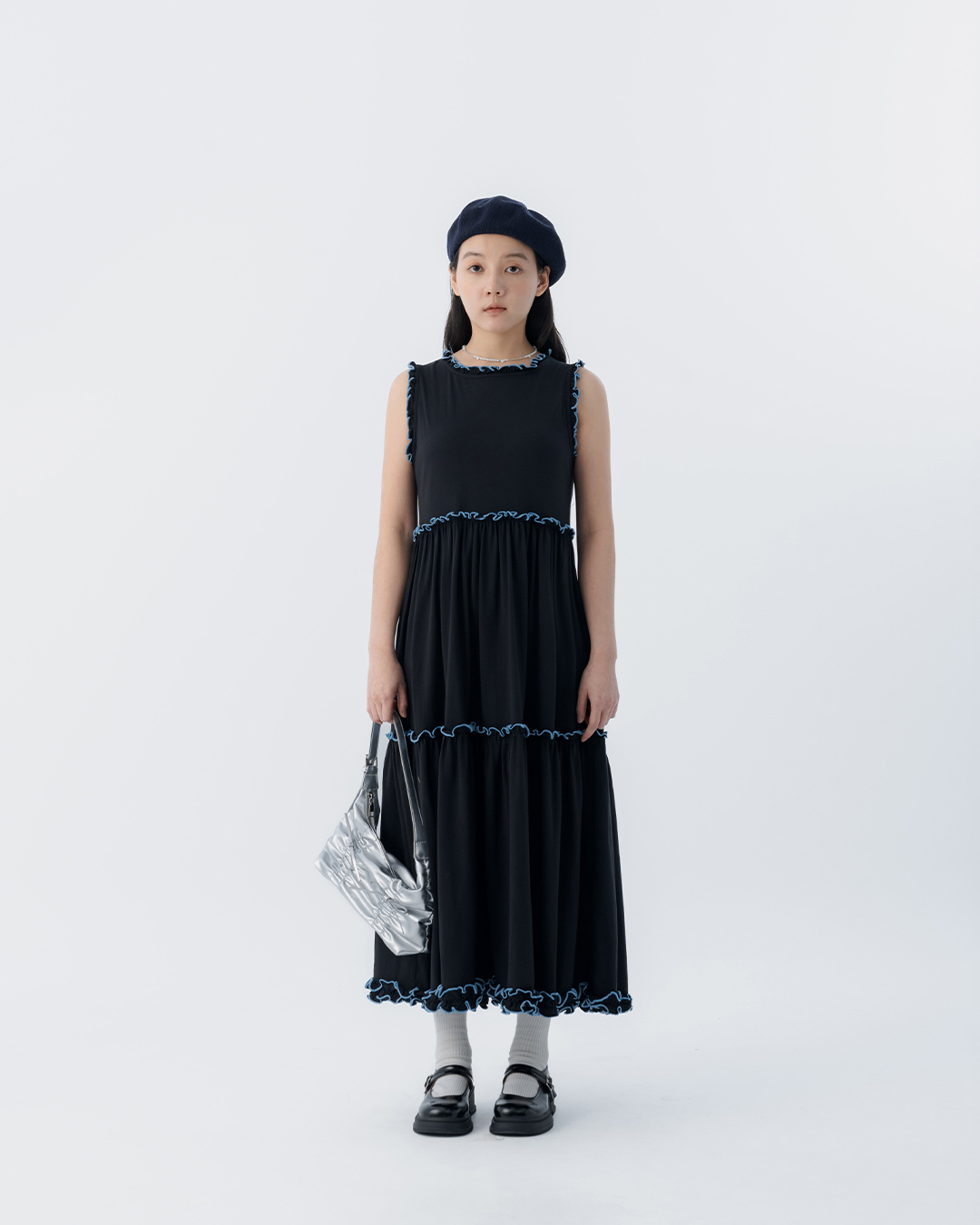 木耳邊荷葉抽繩傘襬長裙 兩色售S/M