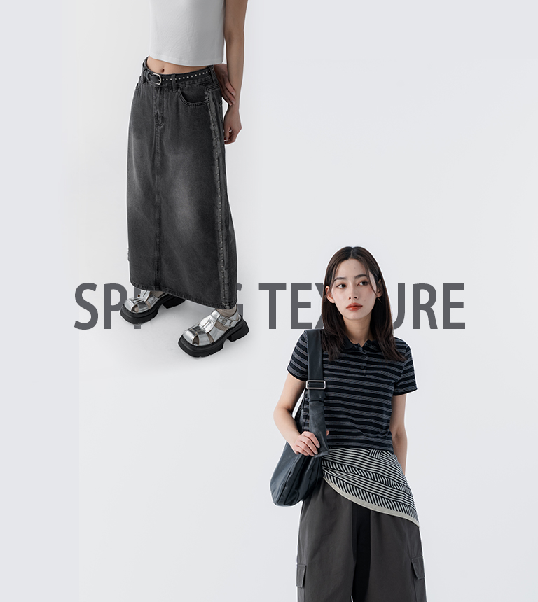鉚釘造型附皮帶牛仔長裙 S/M/L