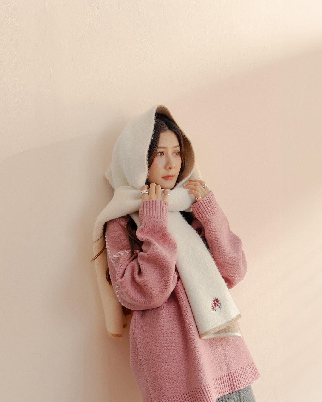 姵萱聯名 手繪花花刺繡雙色設計針織圍巾