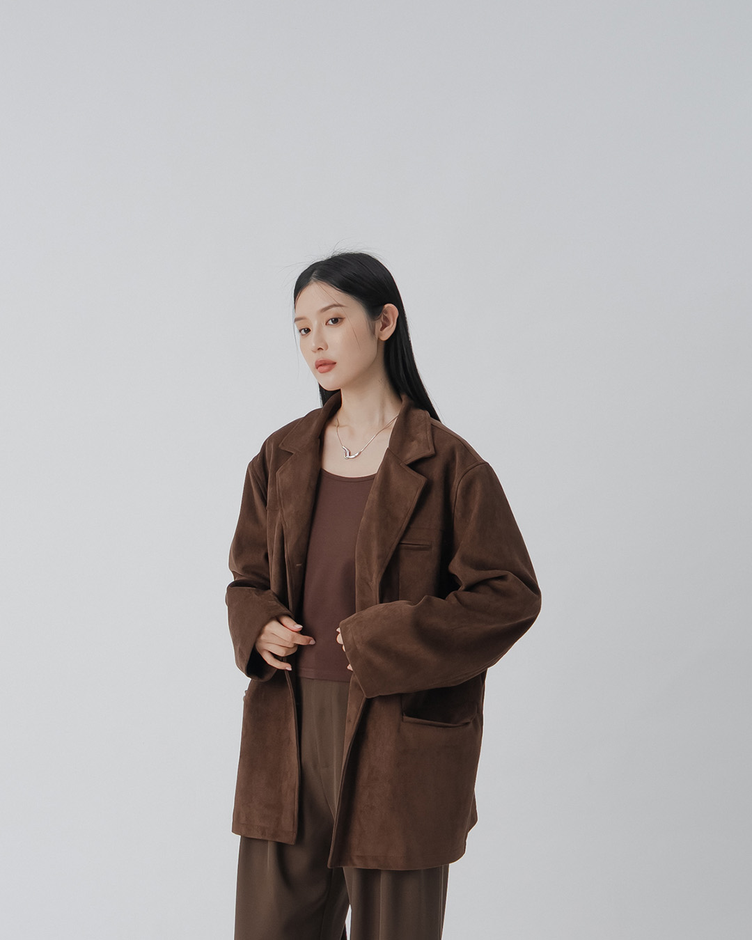 質感金屬釦造型無領短版西裝外套-杏 M/L