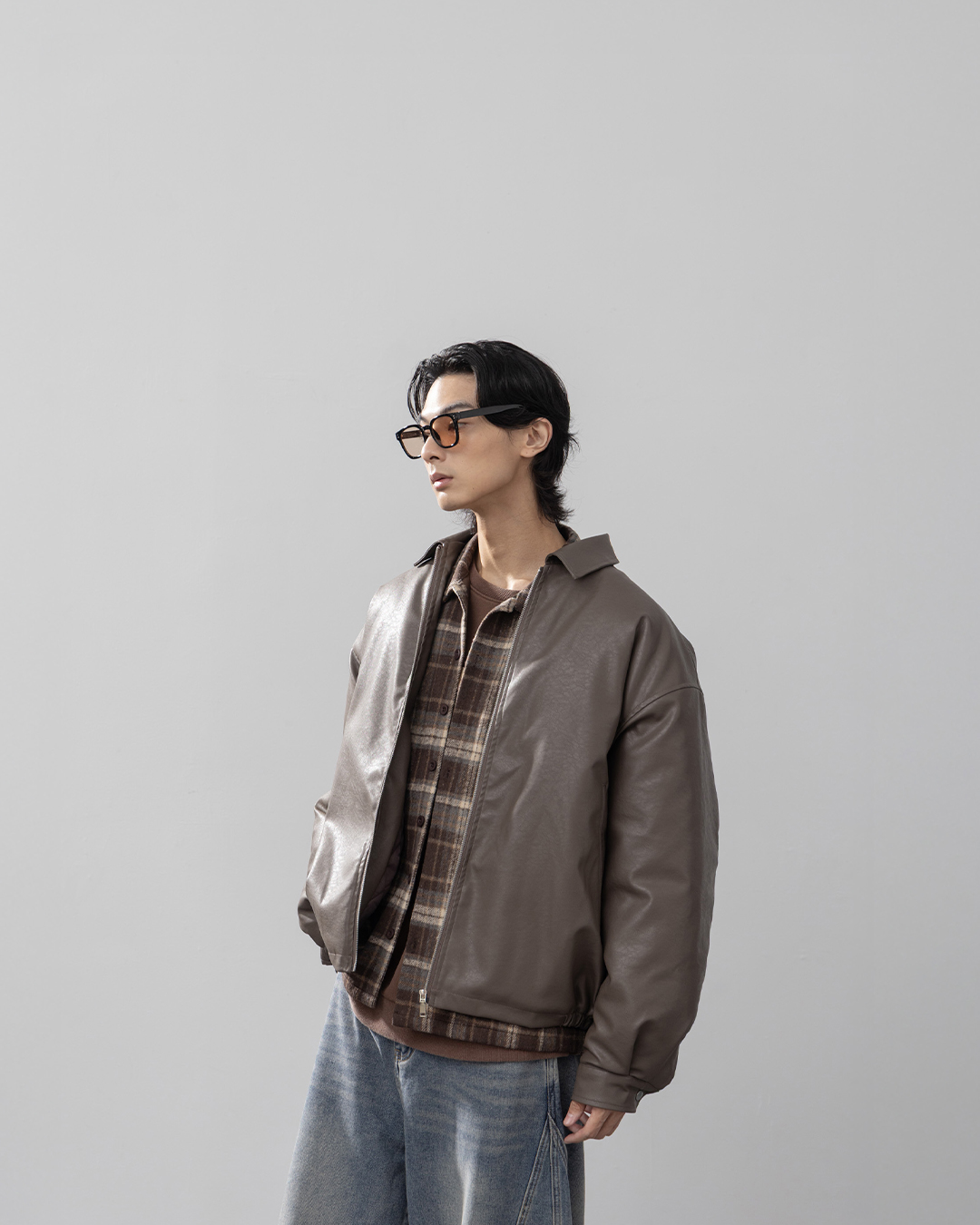 男裝 經典皮革厚鋪棉夾克外套-咖啡 M/L