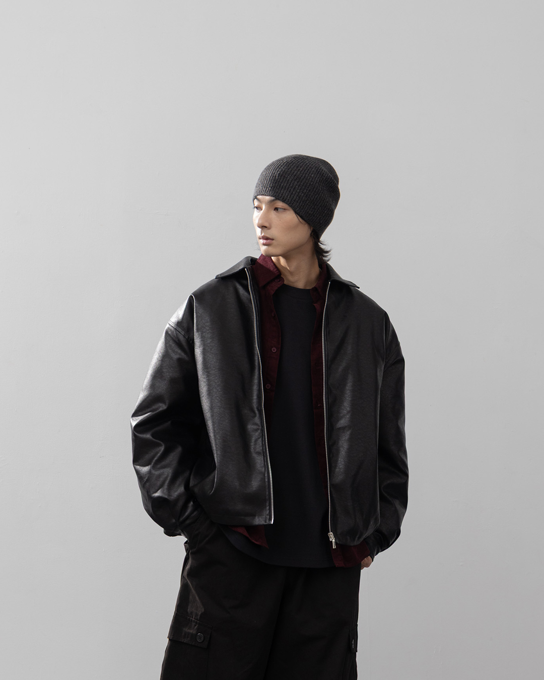男裝 經典皮革厚鋪棉夾克外套-黑 M/L