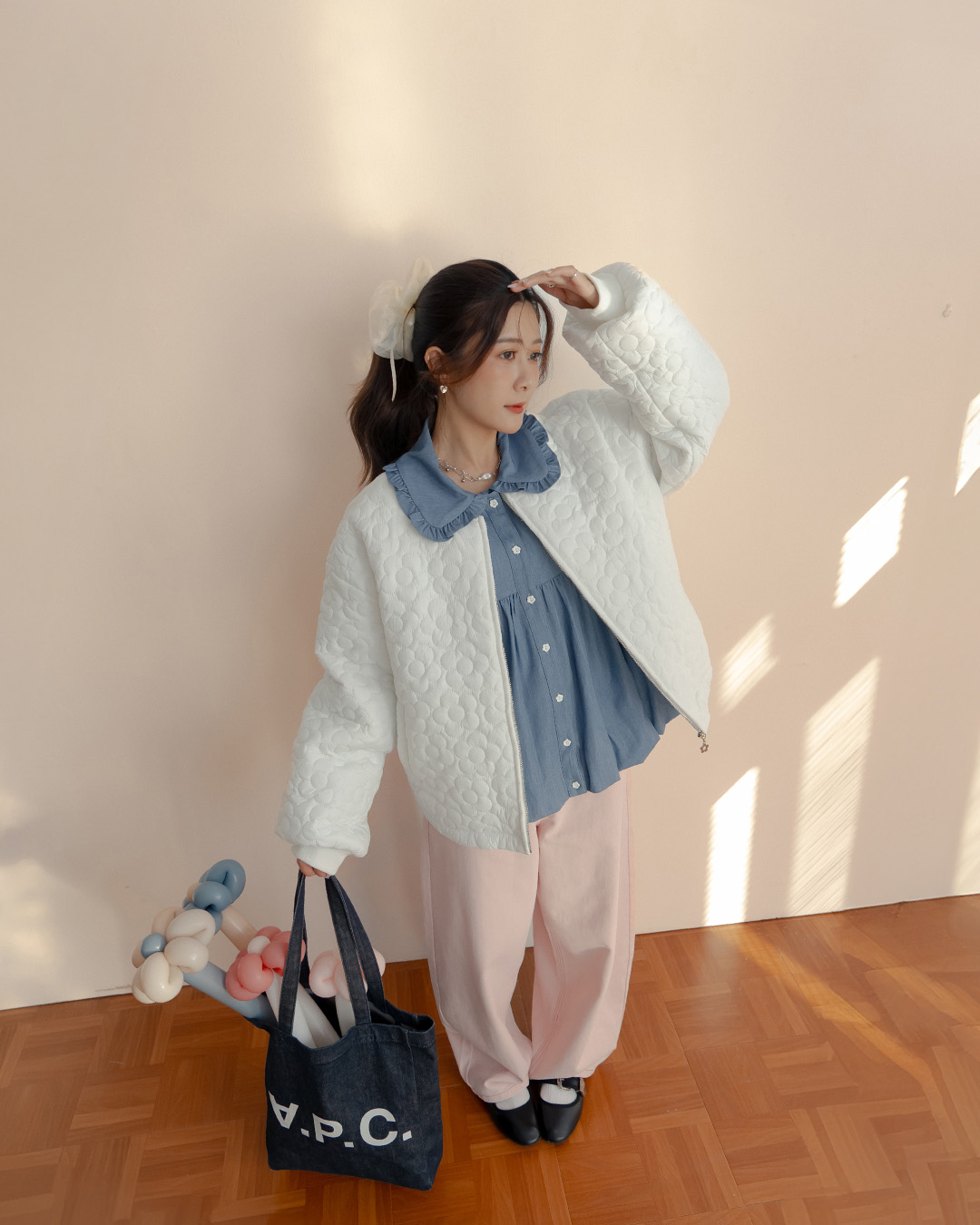 姵萱聯名 花花衍縫設計鋪棉外套