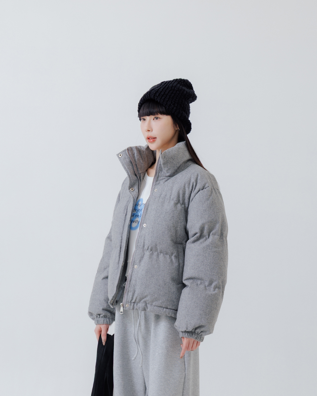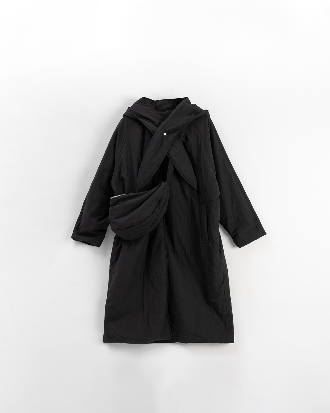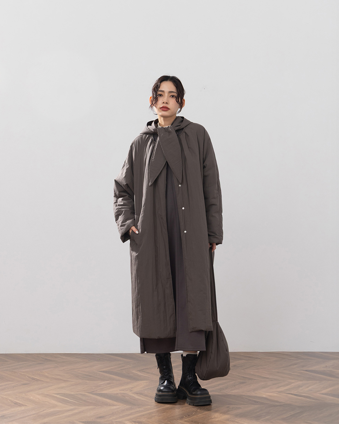 鋪棉長版外套附帽圍半月包三件組 三色售