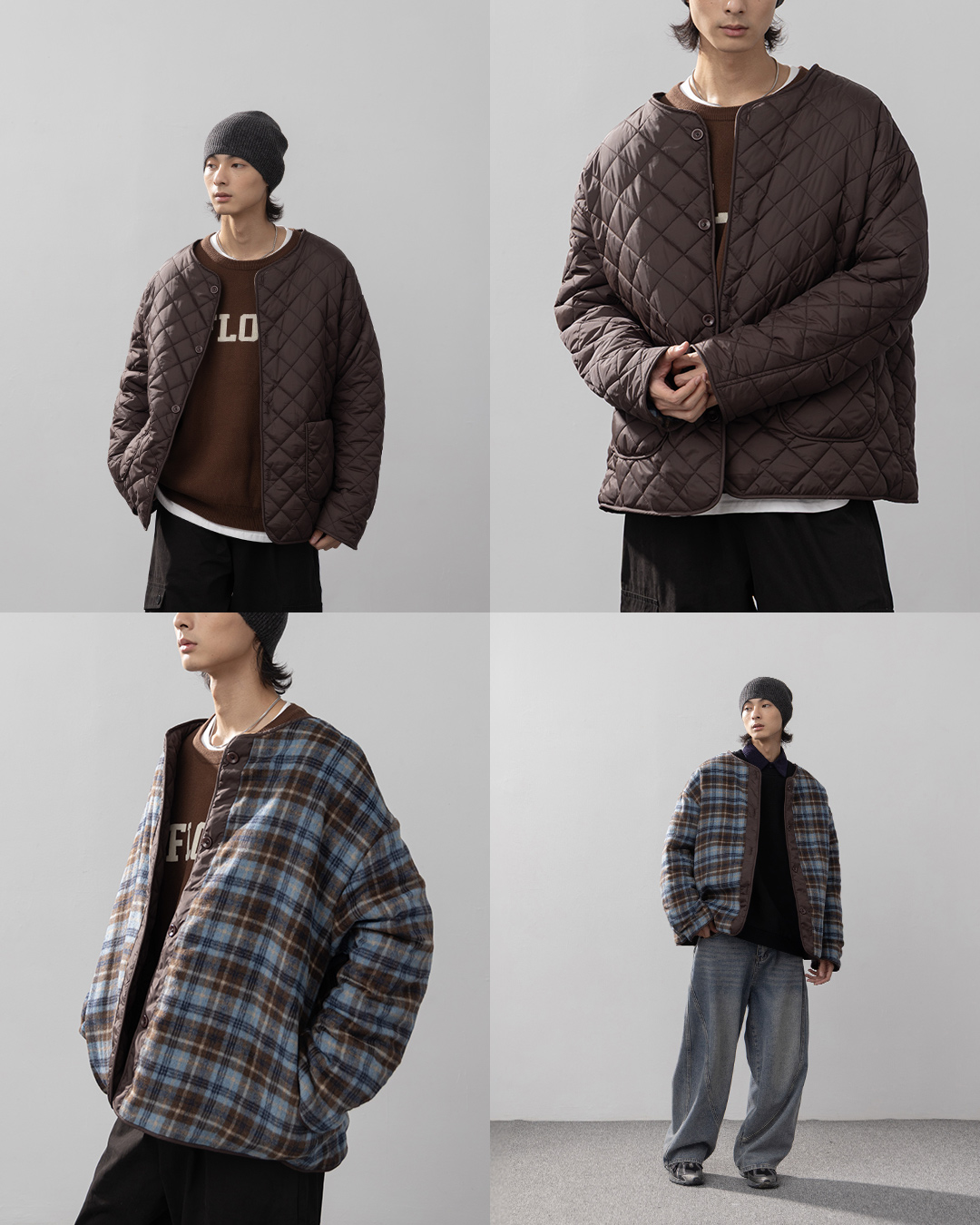 姵萱聯名 立領雙面穿格紋鋪棉背心 M/L
