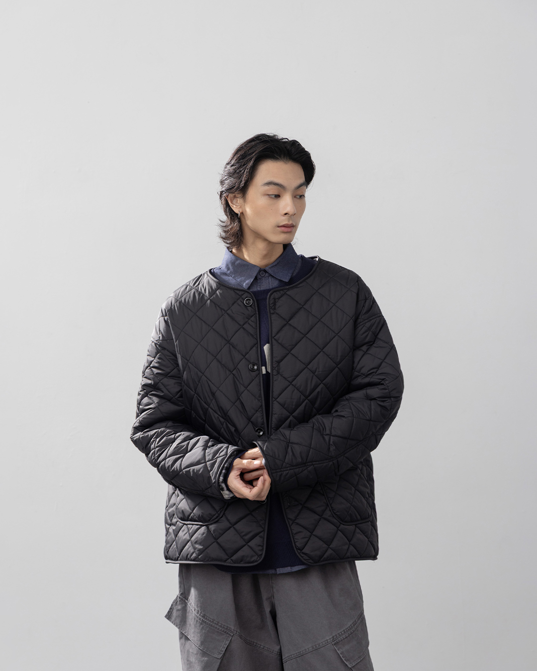 休閒混色設計立領鋪棉外套 兩色售