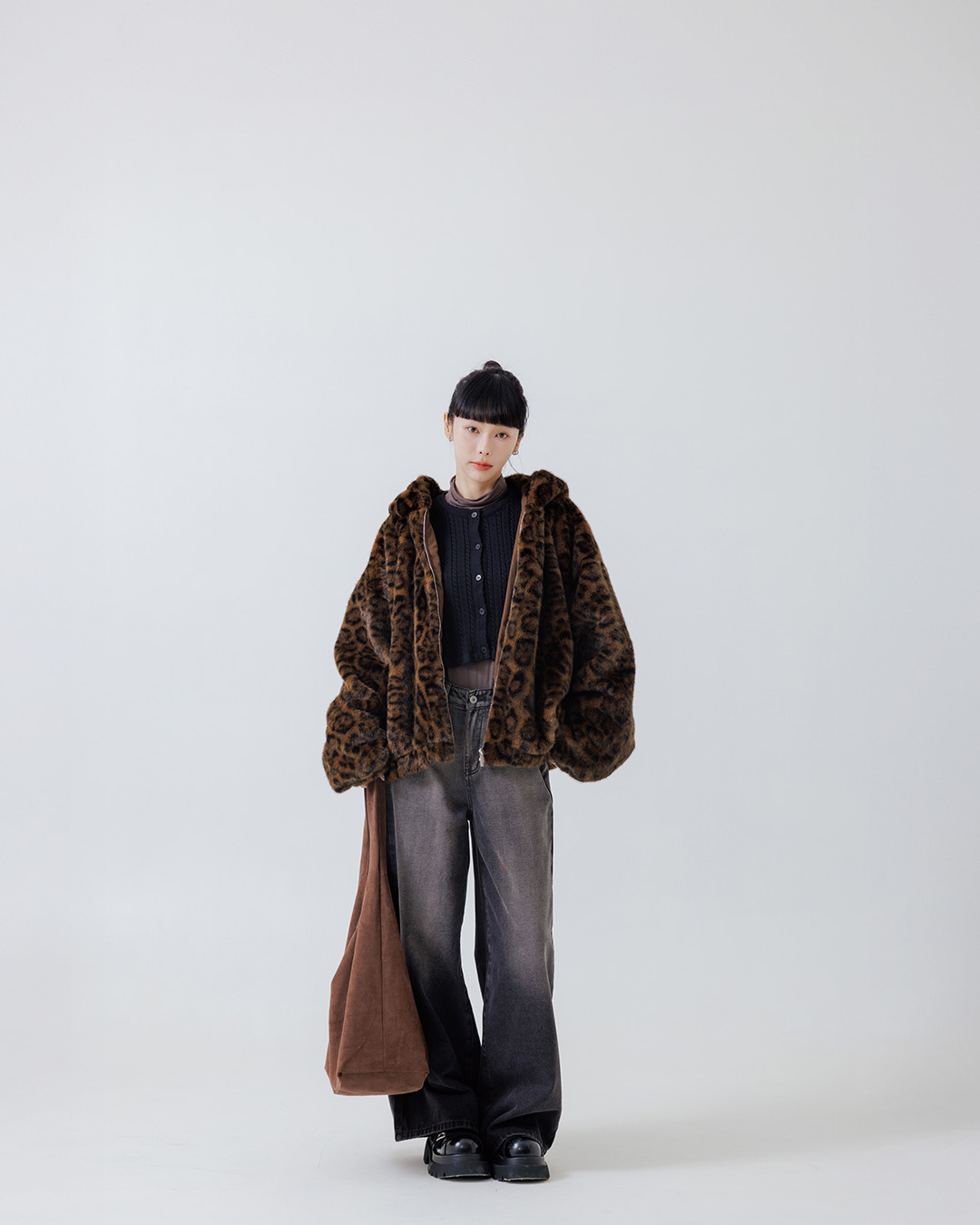 質感豹紋絨毛保暖連帽外套 兩色售