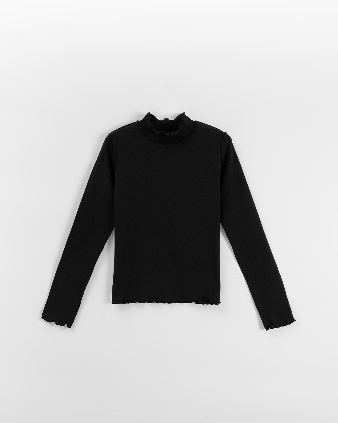 內磨毛木耳邊剪接高領上衣-黑