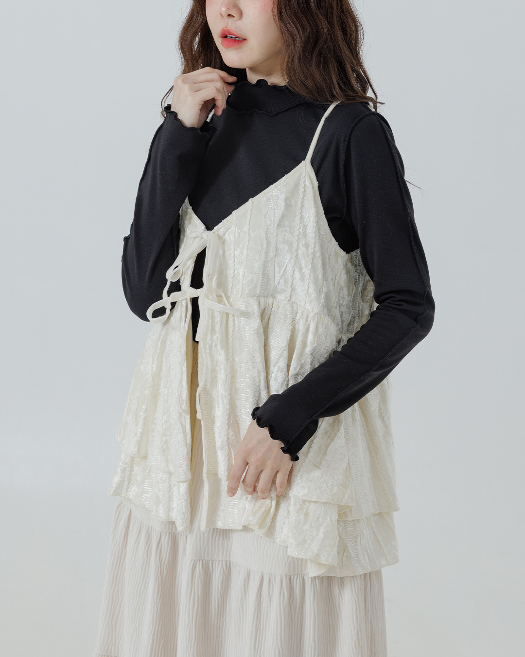 蕾絲拼接傘擺細肩罩衫背心 兩色售 S/M