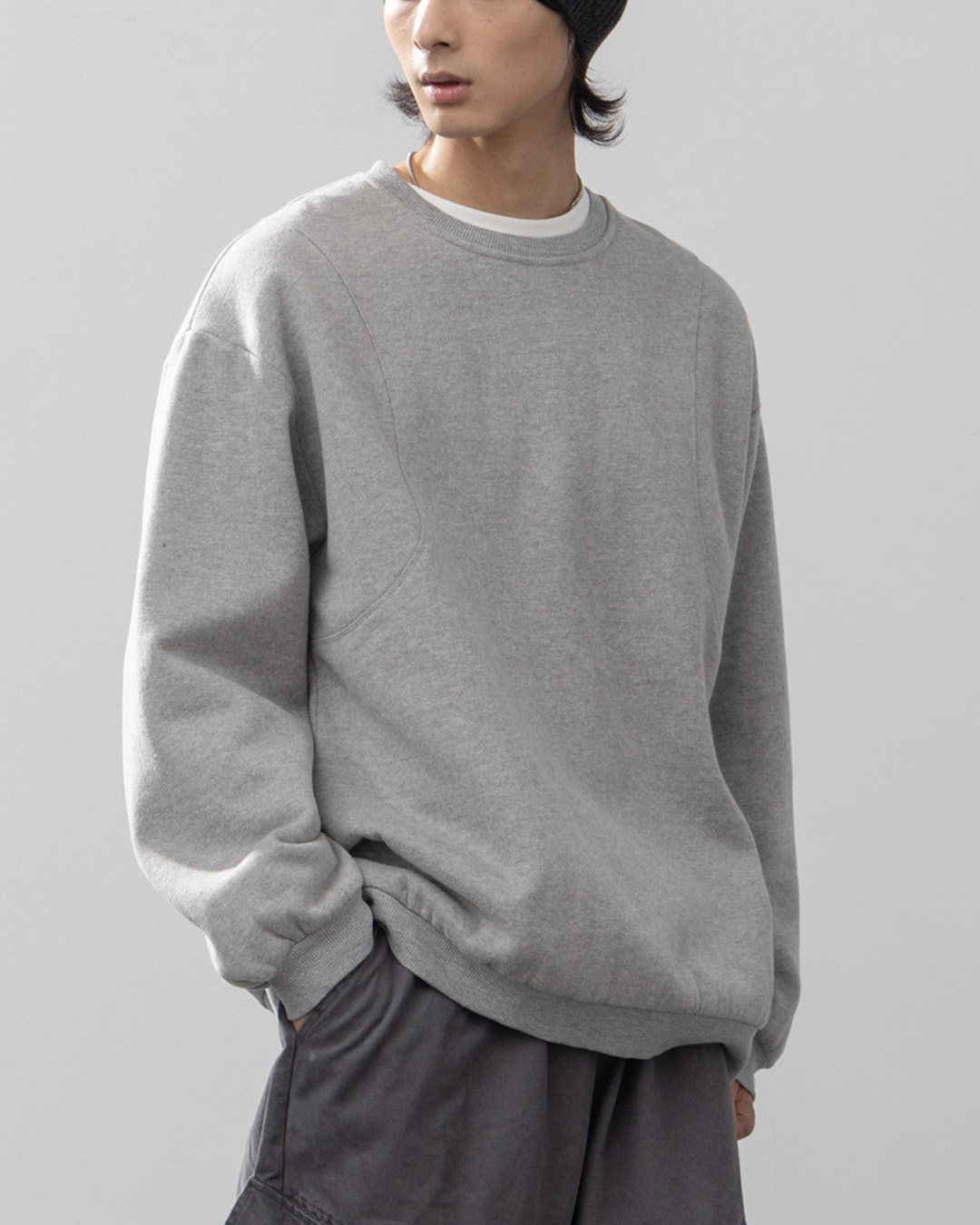 男裝 剪接素面內刷毛設計長袖衛衣-灰M/L/XL