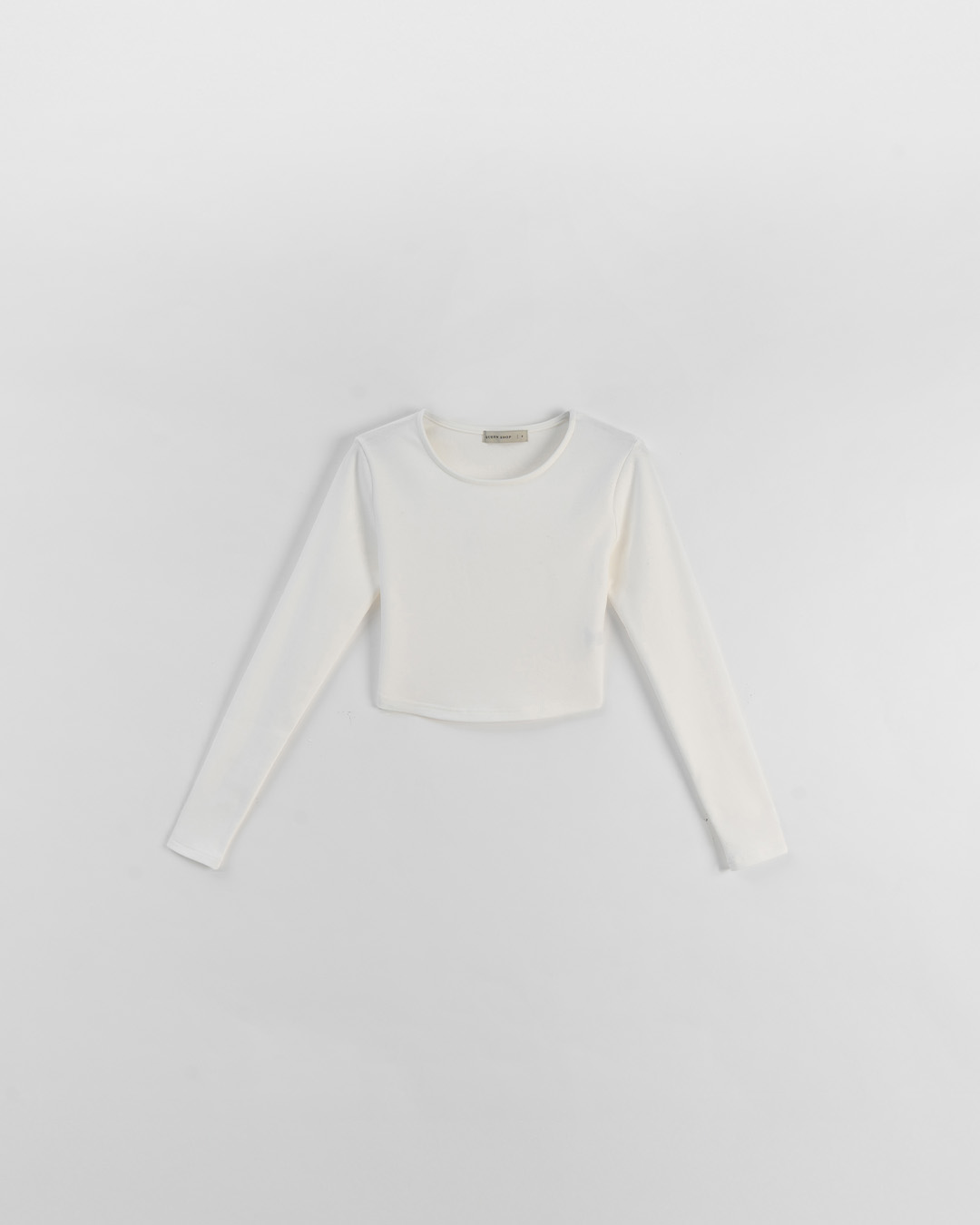 素面圓領短版造型長袖上衣-白 S/M/L