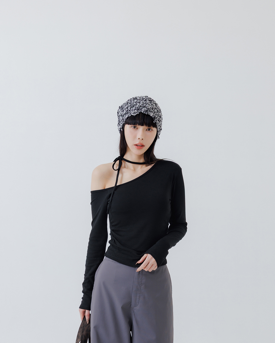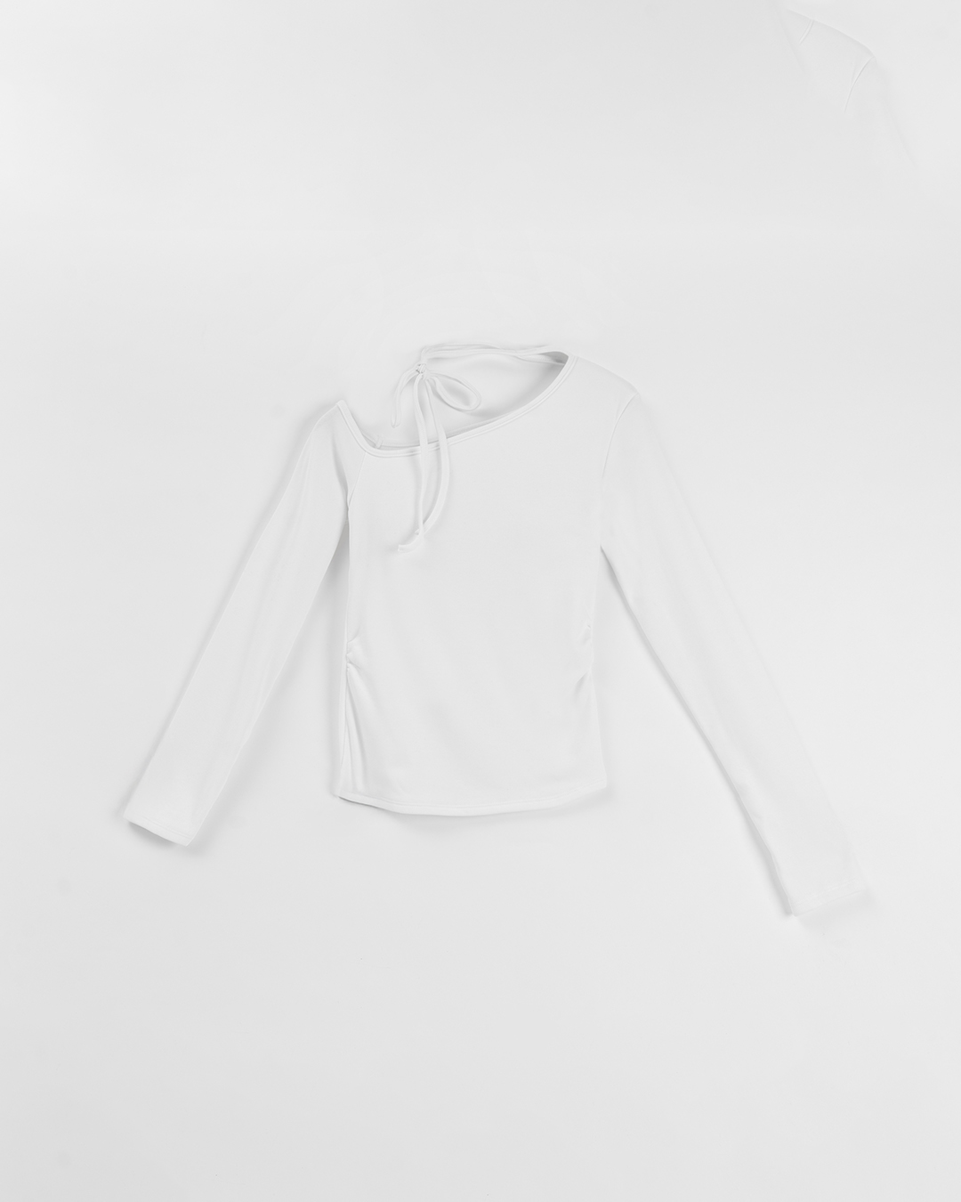 斜肩綁帶設計附Bra長袖上衣 兩色售