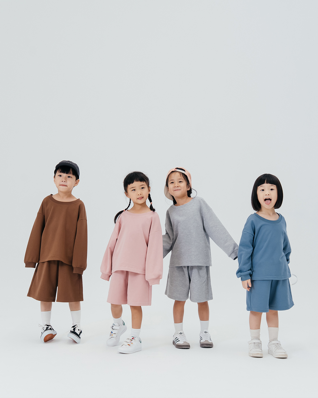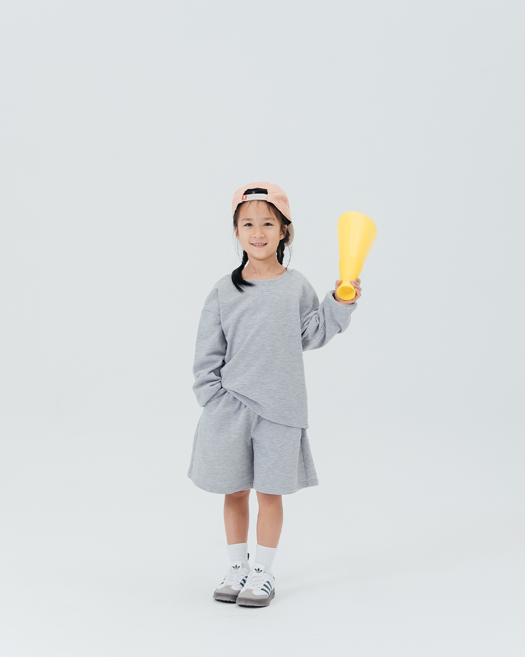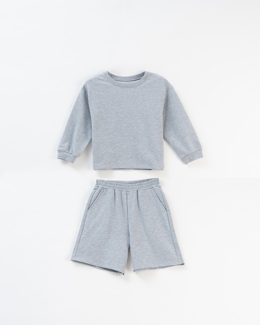 童裝 素面休閒長袖短褲套裝-花灰 M/L/XL
