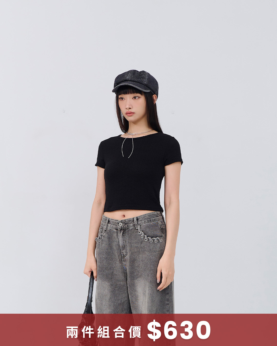 緹花造型圓領短版上衣 四色售
