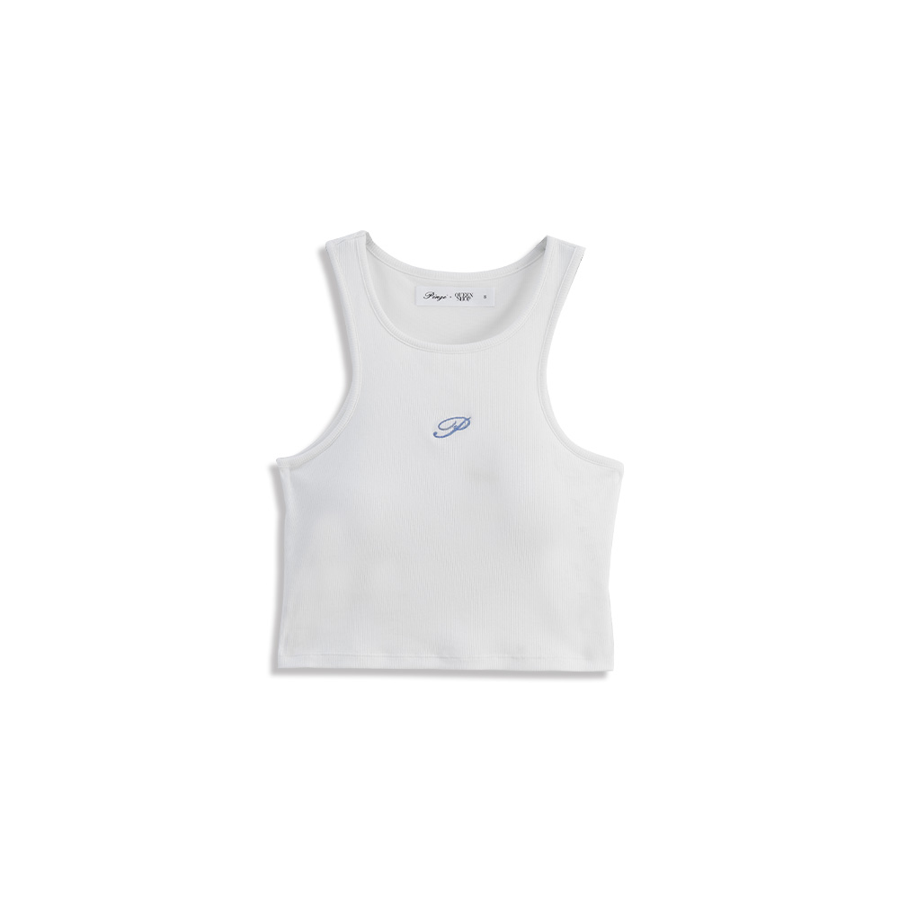 品子聯名 刺繡字附bra坑條削肩背心-白S/M/L