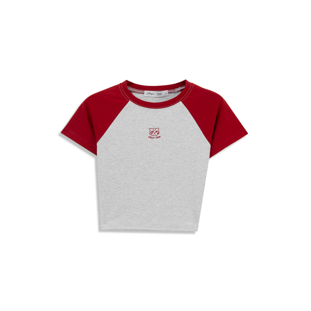 品子聯名 刺繡小圖撞色短版上衣-紅S/M/L